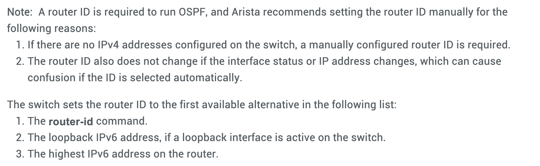 OSPFv3 Router ID Documentation on Arista EOS