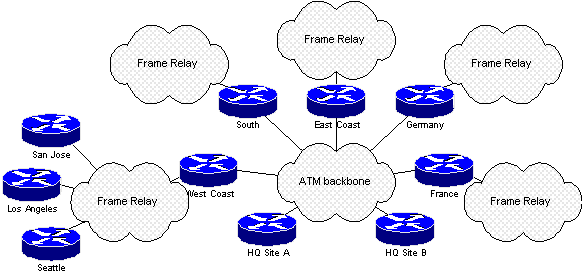 The exercise is part of case study describing AppleTalk routing in Frisco Systems network shown below: