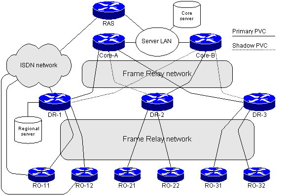 Case study in Chapter 7 discusses partial connectivity in ISDN dial backup scenario in the network shown below: